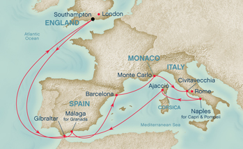 Our Adventure starts at Southampton aboard the Grand Princess and a trip to the Western Med - taking in Malaga, Barcelona, Monte Carlo, Civitavecchia (Rome), Naples, Ajaccio (Corsica).